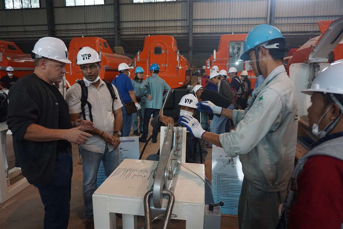 17 ships service elite personnel from all over the world come to Jiangsu Jiaoyan Marine Equipment co., LTD, for the factory equipment of the new design and new product to carry on the deep study and training services, Become a excellent service of Jiaoyan's survival equipment, Supply better quality, more professional, more timely service to Jiaoyan's customers.