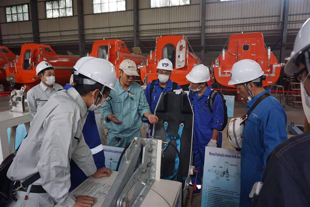 11 ship service elite personnels from MANSEI INC/MARINAIR LIFERAFT CO., LTD/NISHI-NIPPON FUJIKURA CO., LTD/MOL ENGINEERING CO., LTD /SHIPGUARD INC come to Jiangsu Jiaoyan Marine Equipment co., LTD, for the factory equipment of the new design and new product to carry on the deep study and training services, Become a excellent service of Jiaoyan's survival equipment, Supply better quality, more professional, more timely service to Jiaoyan's customers.