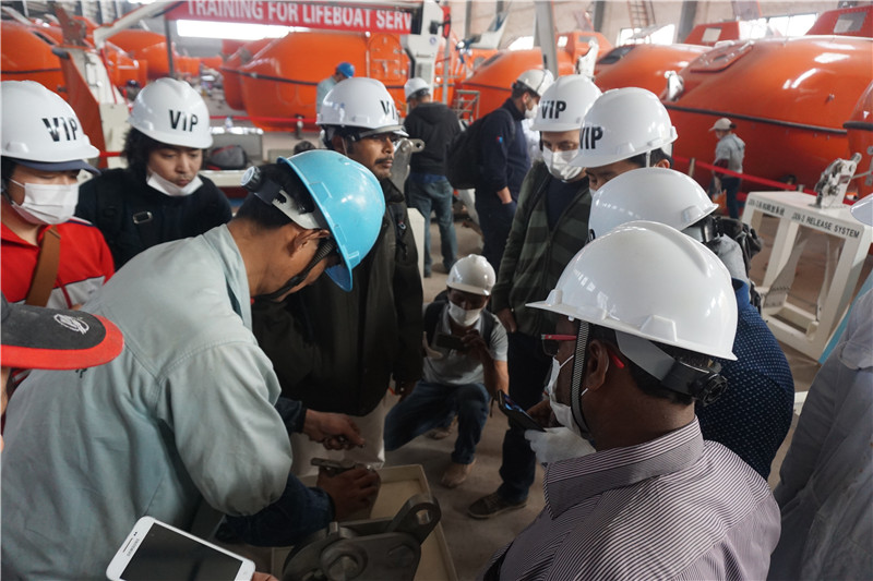 船舶服务精英人员来到乐玩在线登录官网,对厂家设备的新设计,新产品进行深层次的学习和服务训练,成为佼燕救生设备的优秀服务商,为佼燕的客户提供更优质,更专业,更及时的服务.